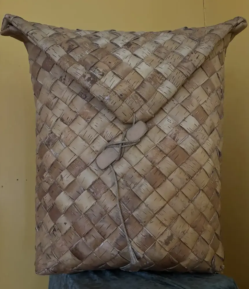 The Norwegian Forest Finn Museum received this wonderful gift from Yngve Moen this winter. It is a very large leather case made by his father Ola Moen, who lived in Svullrya. With a height of 65 cm, a width of 45 cm and a depth of 25 cm, it is probably one of the larger ones in the museum's collection. It is also in good condition, with the straps intact. It was used, among other things, to carry berries from the forest. There was also a pair of children's-sized leather shoes in the case, probably made by Ola's father, Olaf. Yngve Moen has previously given a Gottlund Bible to the museum.